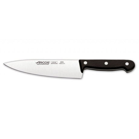 En högkvalitativ och mycket populär kockkniv med ett 17,5 cm långt blad. Tillverkad av det mycket slipbara Nitrum rostfria stålet med en hårdhet på 56 HRC. Slipningsvinkeln för bladet är 20 grader, vilket gör ARCOS-knivarna hållbara och lättskötta verktyg för dagligt bruk. De robusta handtagen av polyoximetylenplast i knivarna är mycket motståndskraftiga mot fukt och ger också ett stadigt grepp.
