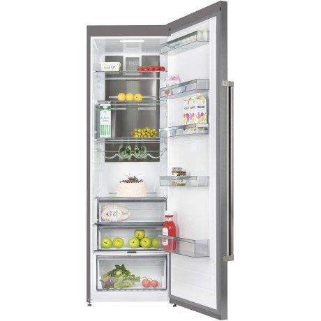 Cylindas kyl ger dig inte bara en snygg yttre design, utan också en inre vardagslyx som du kommer att uppskatta varje dag. Med en digital display på utsidan och ett stabilt metallhandtag, är den enkel att använda och passar perfekt i alla kök. Du kommer att älska de smarta funktionerna som justerbar hylla i dörren, flyttbara glashyllor samt en ihopfällbar glashylla som ger dig oändliga möjligheter att anpassa din kyl efter dina behov. Flaskhyllan är även utformad för de större och bredare flaskorna, medan grönsakslådan är utrustad med ett smidigt vred för att reglera fuktigheten och hålla dina grönsaker fräscha och knapriga längre. Köp Cyld kyl idag och ta steget mot en bättre vardag i stil!