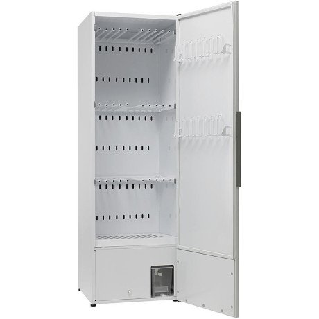 Ett 193 cm högt värmepumptorkskåp med låg ljudnivå (52 dB) och sensorstyrning som känner av när kläderna är torra och därefter stänger av sig automatiskt. Det i samband med värmepumpteknologin gör att du sparar el eftersom energiåtgång endast är 35% jämfört med ett timerskåp. Och eftersom skåpet inte behöver frånluftventilation kan det därför också placeras och fästas mot valfri vägg.
