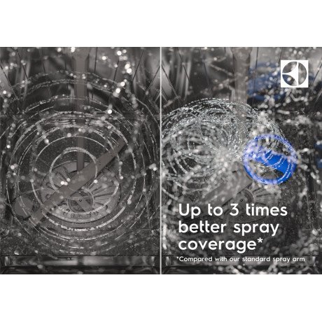 Electrolux EPS60083UX diskmaskinen 600 SatelliteClean® har en innovativ spolarm som erbjuder 3x bättre spraytäckning jämfört med standardsystemet. Den garanterar rengöring i alla hörn så att till och med tätt staplade föremål diskas noggrant.