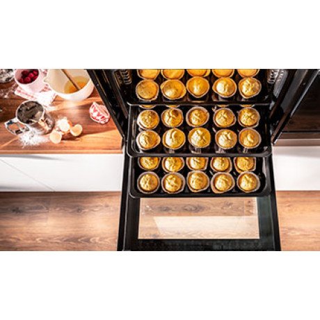 EK 16610-90 har många fördelar och funktioner som hjälper dig att få ut det mesta av din ugn. Med BakingPro System® får du en ugn med exakt värmefördelning, stabil temperatur, snabb uppvärmning och stort ugnsutrymme på 77 liter. Du kan även använda ugnens upptiningsfunktion för att tina upp maten på ett skonsamt sätt. Äkta varmluft ger bra värmefördelning, så du kan bereda flera saker samtidigt. En extra djup långpanna ger dig möjlighet att baka i den storlek som passar för familjen. Push Pull-knapparna är lätta att använda och gömmer sig i manöverpanelen när du använder ugnen. Dubbla kokzoner med olika storlekar gör det enkelt att välja rätt kokzon för din gryta eller stekpanna.