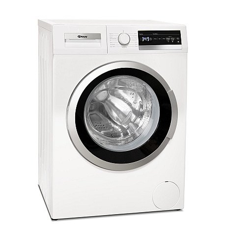 En stilren tvättmaskin WDE 71914-90 från Gram Tvättmaskin i vitt, tvättkapacitet 9 kg. Display med tidsförskjuten start och resttidsindikation. AutoDosPro för automatisk tvättmedelsdosering.