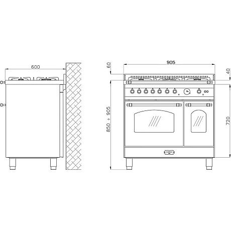 Lofra – Dolcevita induktionsspis med 2 ugnar 90 cm, Krom/ mässing
