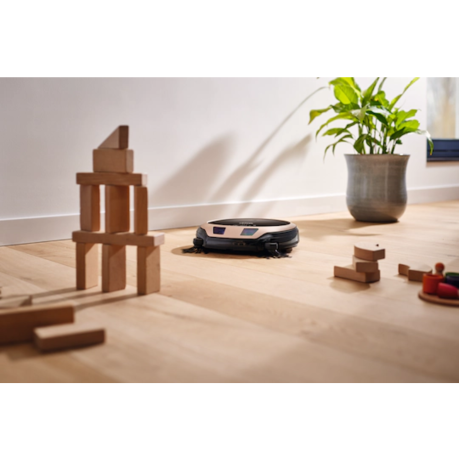 För ännu mer rengöringseffekt Med sina 20 utsvängda sidoarmar som sträcker sig från enheten, når Scout RX3 också in det bortersta hörnet. De 20 borstarna rengör noggrant varje kant och befriar hörnen från de irriterande dammråttorna. Så snart Scout RX3 möter ett hinder, skjuts sidoarmarna helt enkelt tillbaka. Sedan kan den fortsätta, utan att fastna.