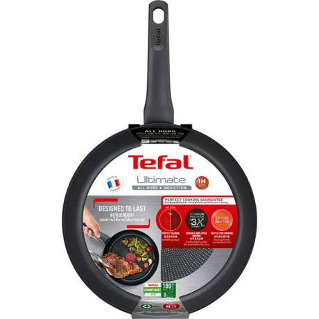 Tefal – Ultimate stekpanna 28 cm Svart Slitstark beläggning Leder värmen snabbt och jämnt Intelligent Thermo-Signal värmesensor Ugns- och diskmaskinsäker Lämplig för alla spisar, inklusive induktionshällar …